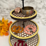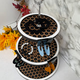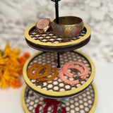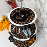 Introducing our elegant Three-Tiered Honeycomb Wooden Tray, a versatile and stylish addition to your home decor or countertop organization. Crafted from carefully layered wood, this unique tray features a honeycomb design that adds a touch of sophistication to any setting.