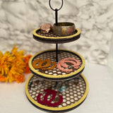 At the base of the tray, the first tier provides a stable foundation  The middle tier offers a visually appealing display area for smaller items. The top tier features a charming hexagonal honeycomb pattern, creating an exquisite backdrop for showcasing delicate ornaments, jewelry, or even serving as a center piece.