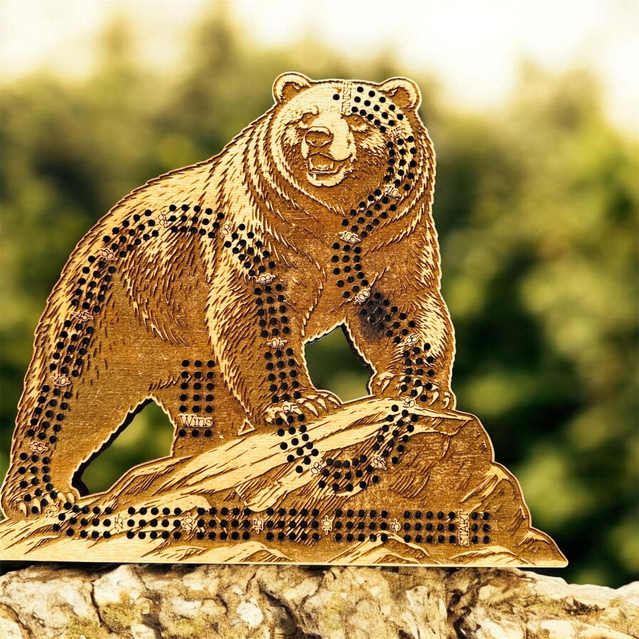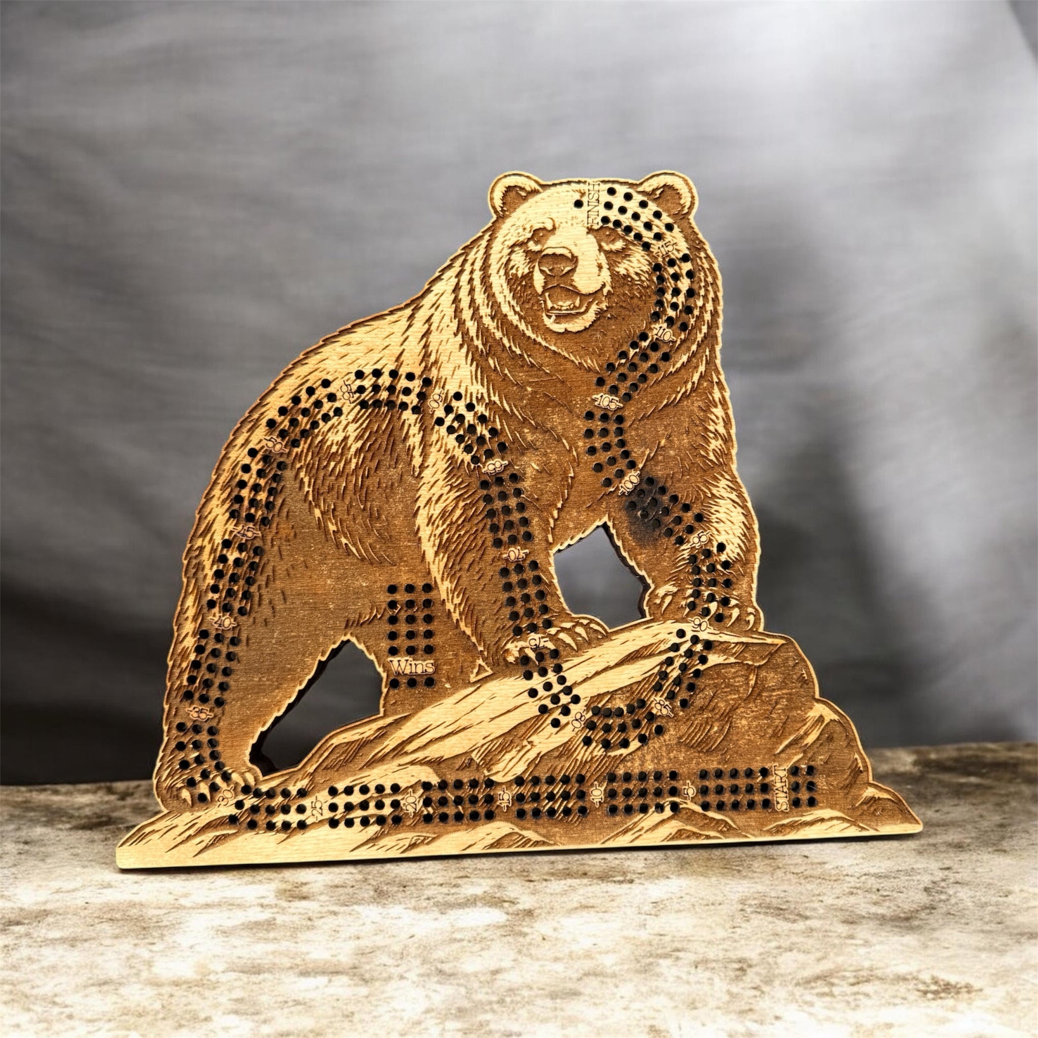 Bring the spirit of the wilderness into your home with this stunning Grizzly Bear Cribbage Board, expertly crafted to be both a functional game and a statement piece of art.