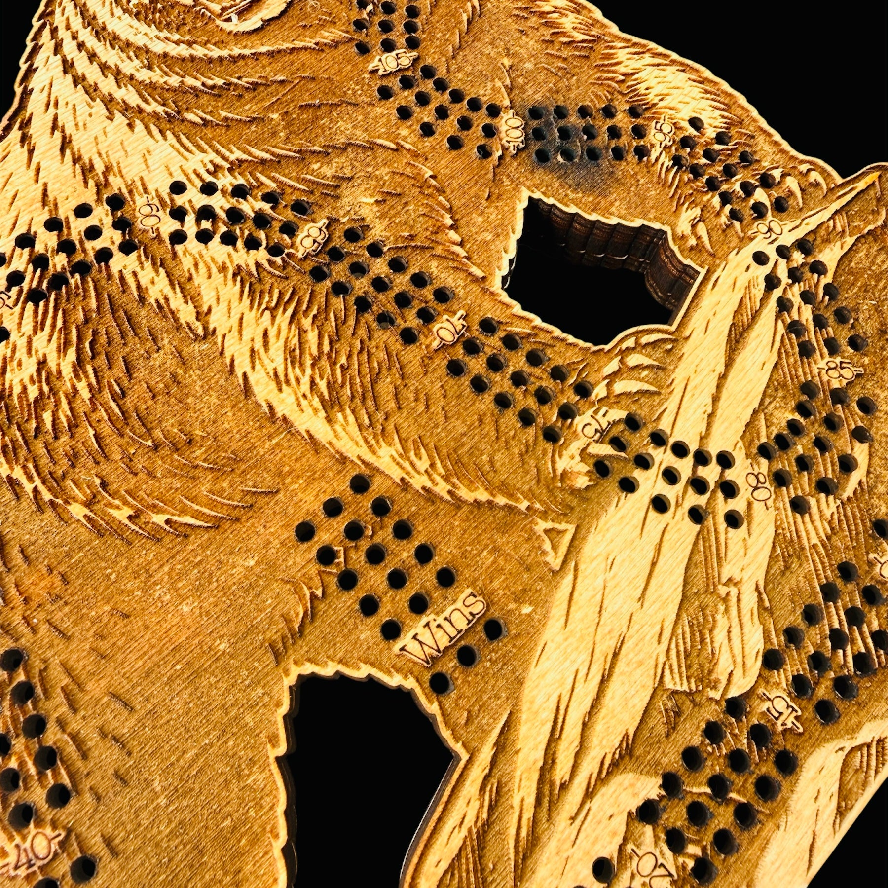Designed at 10” x 10”, this unique board features a beautifully detailed grizzly bear standing proudly over rugged terrain, with precision-drilled cribbage tracks seamlessly integrated into the design. Every curve and engraving highlights the natural beauty of wood, making each piece truly one-of-a-kind.