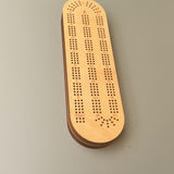 Elevate your game nights with our handcrafted oblong cribbage board. Measuring 15 inches long by 4 inches wide, this board is expertly designed for three players and features a dedicated scoring panel to make keeping track of points simple and seamless.