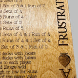 Personalized Frustration Rummy Scoreboard –8 Player- Compact & Travel-Friendly Wooden Game Board