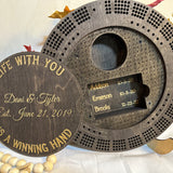 Introducing the perfect addition to your game night - a personalized 10.75 in. cribbage board, expertly laser cut and finished with your choice of stain options.