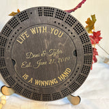 • Customized Round Cribbage Board,10.75 in.,4 Player Board (This item)