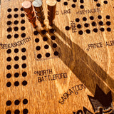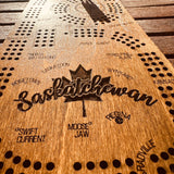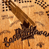 Take your cribbage game to the next level with this Saskatchewan-shaped cribbage board! With space for 3 players and your choice of stain, you'll have hours of fun while keeping score on the convenient panel. A must-have for any cribbage enthusiast (eh?) in your life.