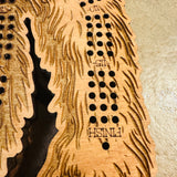 Bring the mystery and beauty of the great outdoors into your home with our Sasquatch 3-Player Cribbage Board. Carefully crafted with laser-engraved details and made from durable baltic birch ply wood, this unique board is a functional game and a striking conversation piece. Gather your friends for a game and experience the legendary spirit of Sasquatch. Approximately 12 inches tall.