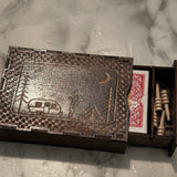 Take your favorite game on the go with our travel size cribbage board! At 5 x 3.5 inches, it's perfect for long car rides or flights. Handmade and made to order with customizable stain options, it's the perfect addition to your travel essentials. Let the games begin!